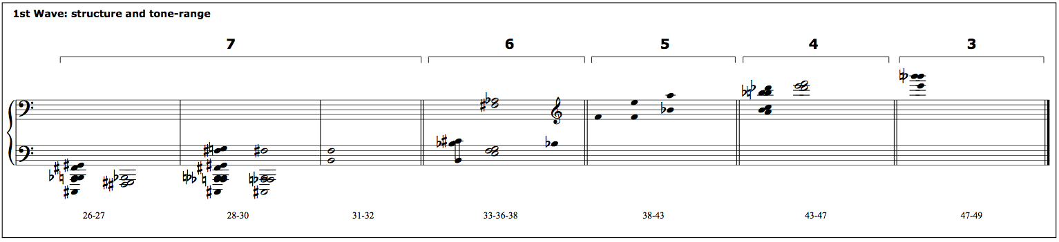 Bars 60–73: the fifteen chords and their construction out of the previous six chords.