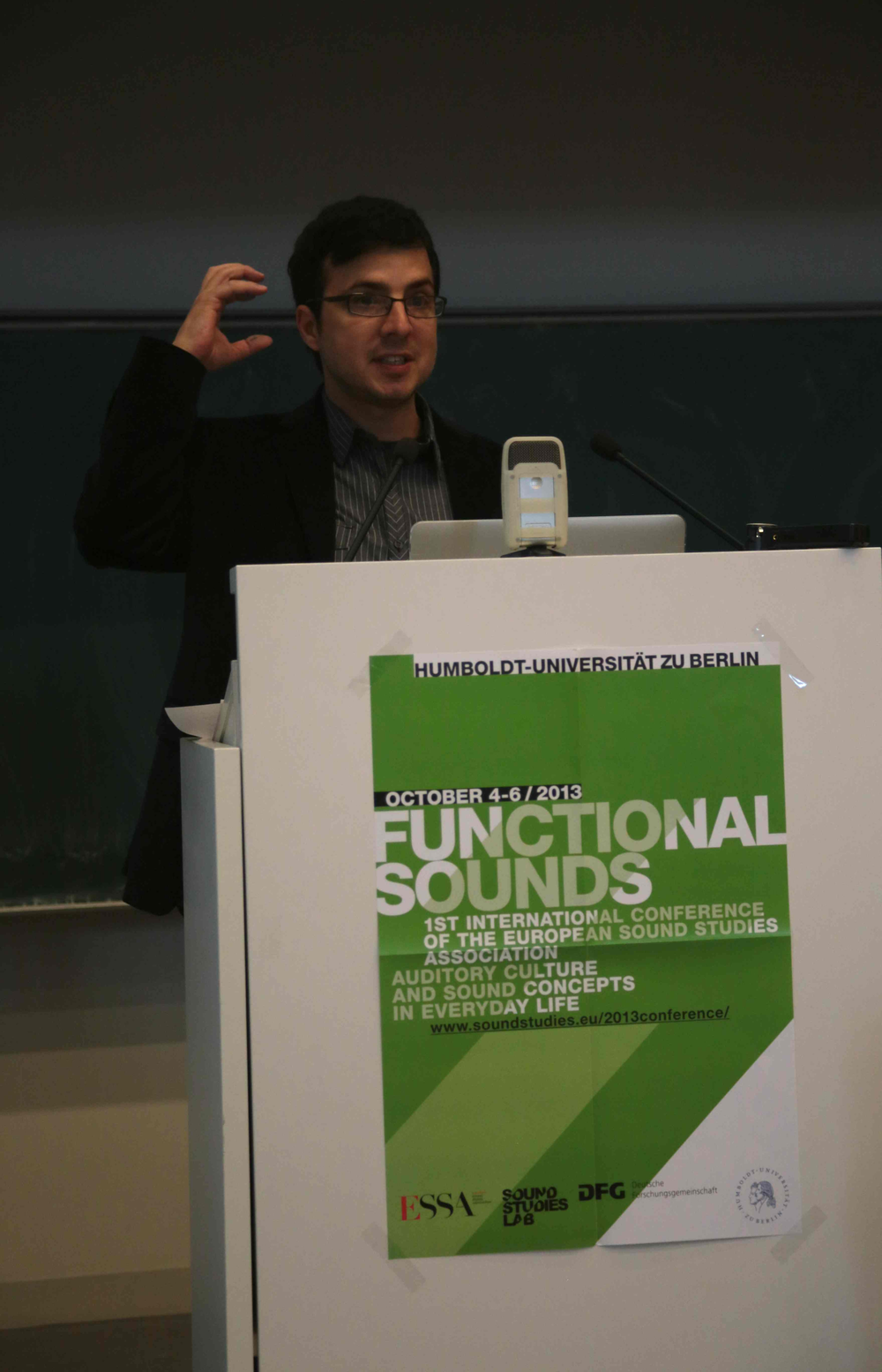 In October 2013 the Sound Studies Lab hosted and organized the first international conference of ESSA at the Humboldt-University, entitled Functional Sounds: Auditory Culture and Sound Concepts in Everyday Life. The conference was co-funded by the German Research Foundation, the DFG. Keynote speakers were Jason Stanyek from the University of Oxford and Douglas Kahn from the University of New South Wales.