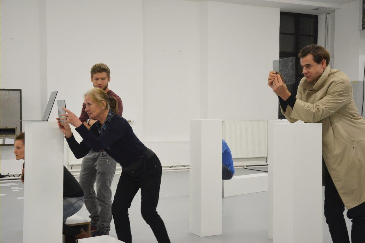 Die Raumgestaltung übernimmt der bildende Künstler Ralf Ziervogel. Auf kindsgroße Stelen wird er getönte Glasscheiben aufstellen, benetzt mit Fingerspuren, die an heutige Table-Computer erinnern und zugleich Zeichnungen sind. Werden die Objekte zunächst in einer eindeutigen geometrischen Formation im Raum platziert, können sie während der Aufführung von den Besuchern frei umgestellt werden, auch die Glasscheiben können bewegt, ausgetauscht oder anderer Weise benutzt werden.