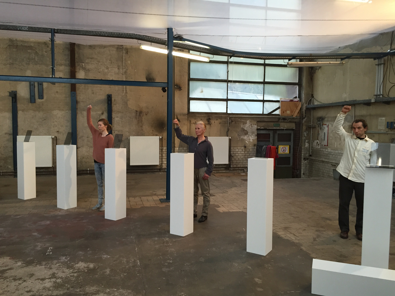 VERHALTET EUCH RUHIG / KEEP QUIET is a durational format on the boarder of visual art and choreography. Visitors can decide themselves when to come and to leave the space. The project subverts classical separations of spectators and performers and questions the possibilities of political change through insurrections as well as through an artictic medium: "The monument has to become revolution and the revolution has to become monument again." (Jacques Rancière)