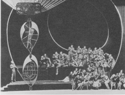The late 1950s was a very successful period for the Royal Swedish Opera in Stockholm. A highly competent opera director was at the helm, and a group of prominent personalities in Swedish cultural life were more or less permanently attached to it. Cooperation and a will to widen the limits of the idiom of opera and ballet characterized many of the productions of the 1950s. The opera Aniara would be the climax of a series of new, innovative projects. In addition to Lindegren, Martinson and Blomdahl, Birgit Åkesson, who was in charge of the choreography, deserves to be mentioned. The conductor responsible for the musical interpretation was Sixten Ehrling (1918-2005). The stage design and the costumes were the work of the painter Sven Erixson (1899-1970). The director and coordinator of the entire project was Göran Gentele (1917-1972).