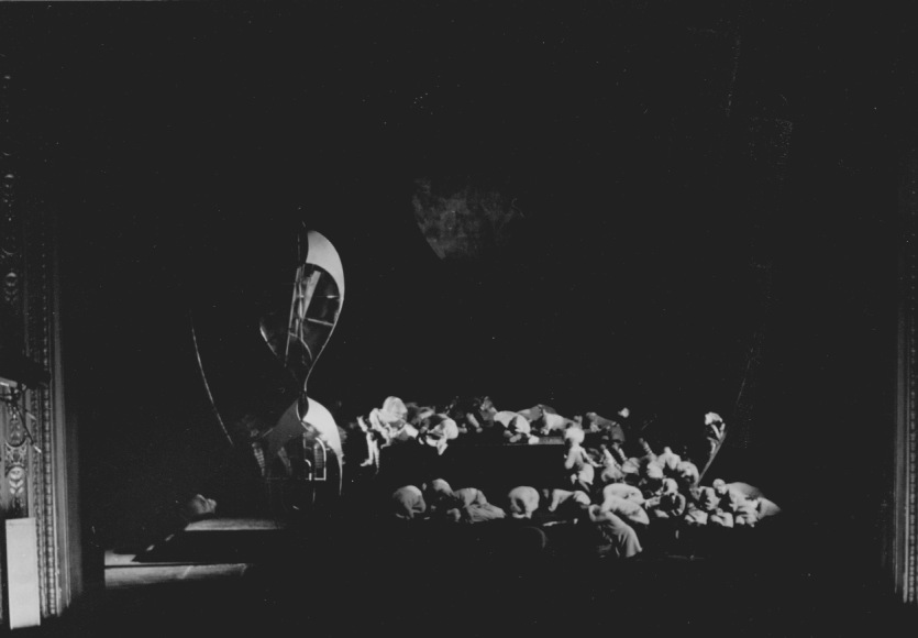 The late 1950s was a very successful period for the Royal Swedish Opera in Stockholm. A highly competent opera director was at the helm, and a group of prominent personalities in Swedish cultural life were more or less permanently attached to it. Cooperation and a will to widen the limits of the idiom of opera and ballet characterized many of the productions of the 1950s. The opera Aniara would be the climax of a series of new, innovative projects. In addition to Lindegren, Martinson and Blomdahl, Birgit Åkesson, who was in charge of the choreography, deserves to be mentioned. The conductor responsible for the musical interpretation was Sixten Ehrling (1918-2005). The stage design and the costumes were the work of the painter Sven Erixson (1899-1970). The director and coordinator of the entire project was Göran Gentele (1917-1972).