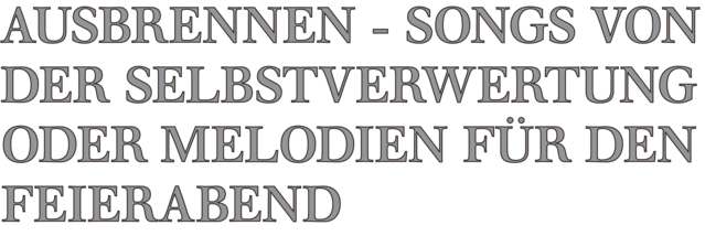 Ausbrennen - Songs von der Selbstverwertung oder Melodien für den Feierabend ist Konzert, Live-Hörspiel und Performance, ist ein Ringen um den Feierabend für brennende und ausgebrannte EinzelkämpferInnen, ist der Versuch eines neuen Arbeiterlieds. Musik! Musik!