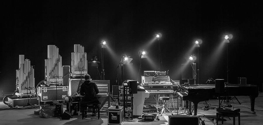 In his latest concert tours Frahm performed amidst a jumble of instruments. For instance in the Spaces tour he seated himself amidst “a grand piano, upright piano, synthesisers, electric piano and tape delays.” In his current tour - Nils Frahm has lost his mind - he added “drum machines, a Mellotron (tape replay keyboard containing pre-recorded self-made sounds), his (…) Una Corda and a custom made, electronically-controlled wind organ to his new live set” (Erasedtapes, 2015). To understand Frahm’s musical practices I defined his approach as aesthetic ecology, which refers to an approach to music preoccupied with the creation of an environment with which individuals interact to create music and that gives preference to spontaneous creation over well-rehearsed performances.