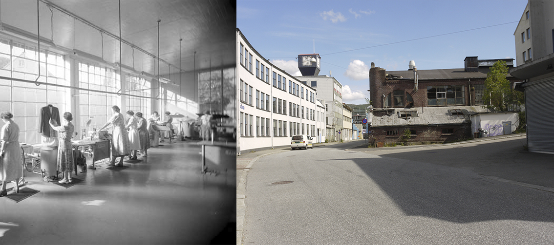 "Damsgaardsveien" is a compressed area limited to approximately 2 kilometres along the harbour and industrial side of Bergen. From the 1920s to 1970s this part of Bergen consisted mainly of shipbuilding yards and other maritime and industrial related activities. Most of these activities today are closed and the neighbourhood is now in a state of post-industrial re-urbanisation. The Bergen council has already initiated plans to reclaim this territory for urban resettlement. Like many of the water-front areas in larger towns in Europe, Damsgaardsveien will eventually constist of flats and centers for modern urban activites, such as shopping malls, cafes and restaurants. Although the Bergen council sees this district as a possibility for modernisation of Bergen, right now, in its semi-ruined state and on the verge of a more or less total make-over, it has a charm and identity that stems from layers of history folded into it’s streets.