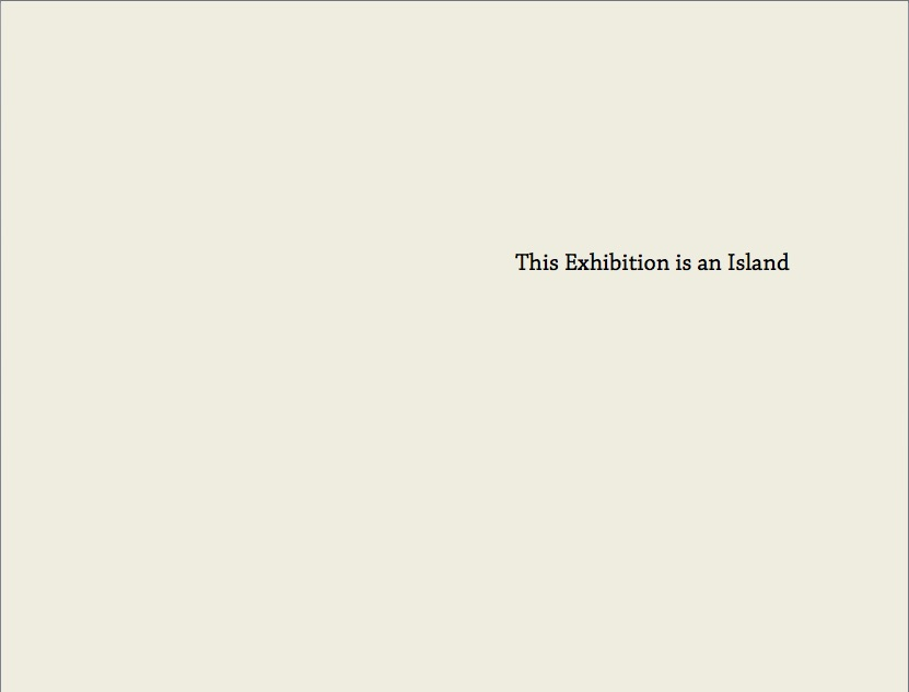 With this in mind I suggested a more creative approach to examining the show over time, which seemed in keeping with the artist’s own motives. Envisaging the exhibition as an island, over four chapters I would use science fiction tropes and other generic devices to represent the show. Their contents are a fictional narrative, rather than a curatorial or critical one. And these chapters would be written over the course of the exhibition, each looking at different aspects of the life of the island.