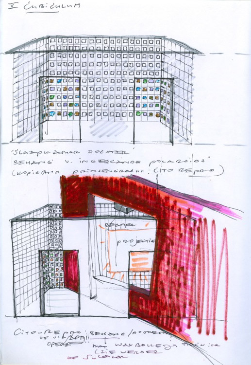 I am creating an installation, as the result of my PhD Project. The place I have in mind for realizing it is part of the North/South line currently under construction in Amsterdam: the Rokin metro station. For over two years I have been following the construction history at this site by making photos in situ. The installation is inspired on a classical atrium house. But it is also a reaction to the eventful building history of the North/South line, which is not only about digging, but also about building and thus about living.