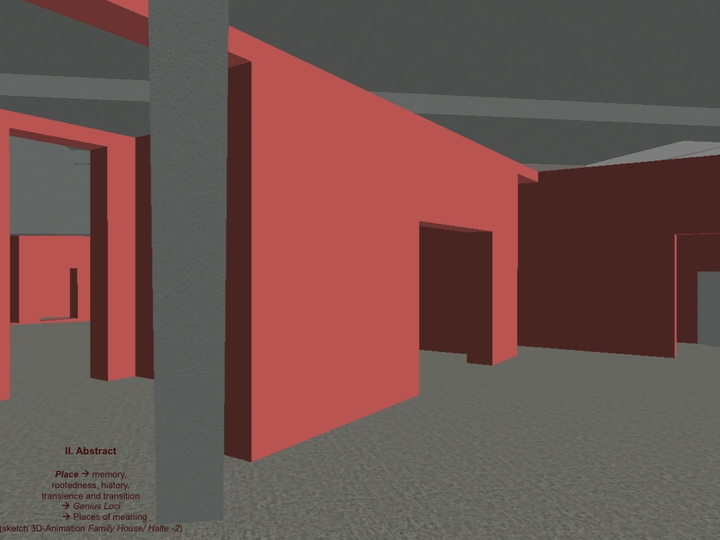 Walk into the Family House / Halte -2 via the Vestibulum/ Fauces (sketch 3D-Animation Family House/ Halte -2)