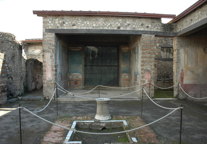 However, the salutatio did not always exist as a common ritual in Pompeii. With the expansion of the atrium house with a patio, garden and garden rooms – by adding, in other words, a second atrium to the house and making it ‘deeper’ – the representational function of the former atrium and tablinum diminished. At one point the tablinum even disappeared altogether, or was remodeled into a passageway leading to a second atrium: the so-called peristylium or arcade.