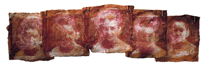 Työskennellessäni tämän omaelämäkerrallisen kuvaston kanssa toimin intuitiivisesti vailla ennakkosuunnitelmia tai työskentelylle tietoisesti asettamiani päämääriä. Ripustaessani taiteellisen työskentelyprosessin aikana syntyneet työt näyttelyksi Peilileikki II tein työskentelyyni liittyvän retrospektiivisen huomion: olin kokoamassa teosteni omaelämäkerrallisen kuvaston avulla naisellista sukupuutani (kuva 2). Keraamisten töiden lähtökohtina olivat työprosessin alussa valitsemani valokuvat, jotka esittivät sukuni naisia viidessä polvessa. Kuvissa esiintyi itseni lisäksi äitini, äidin äitini, äidin äidin äitini (kuva 3) sekä äidin äidin äidin äitini.