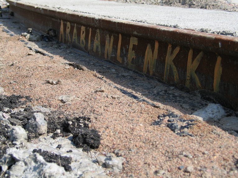Figure 7. At the time of summer 2004, the number 6 tramline was being extended into the newly emerging Arabianranta neighbourhood. Exposed, written on the side of one of the tracks was 'Arabianlenkki', which if translated from Finnish means 'Arabia links'.