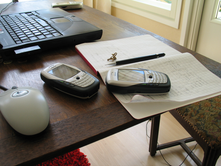 Figure 9. The mobile devices we used in our workshop and guided tour presentation were 6 Nokia 6600 media-phones. Launched in 2003, at the time of our workshop they were one of the most advanced Nokia products available, with VGA camera, mobile-video (9-27secs) and external memory card .