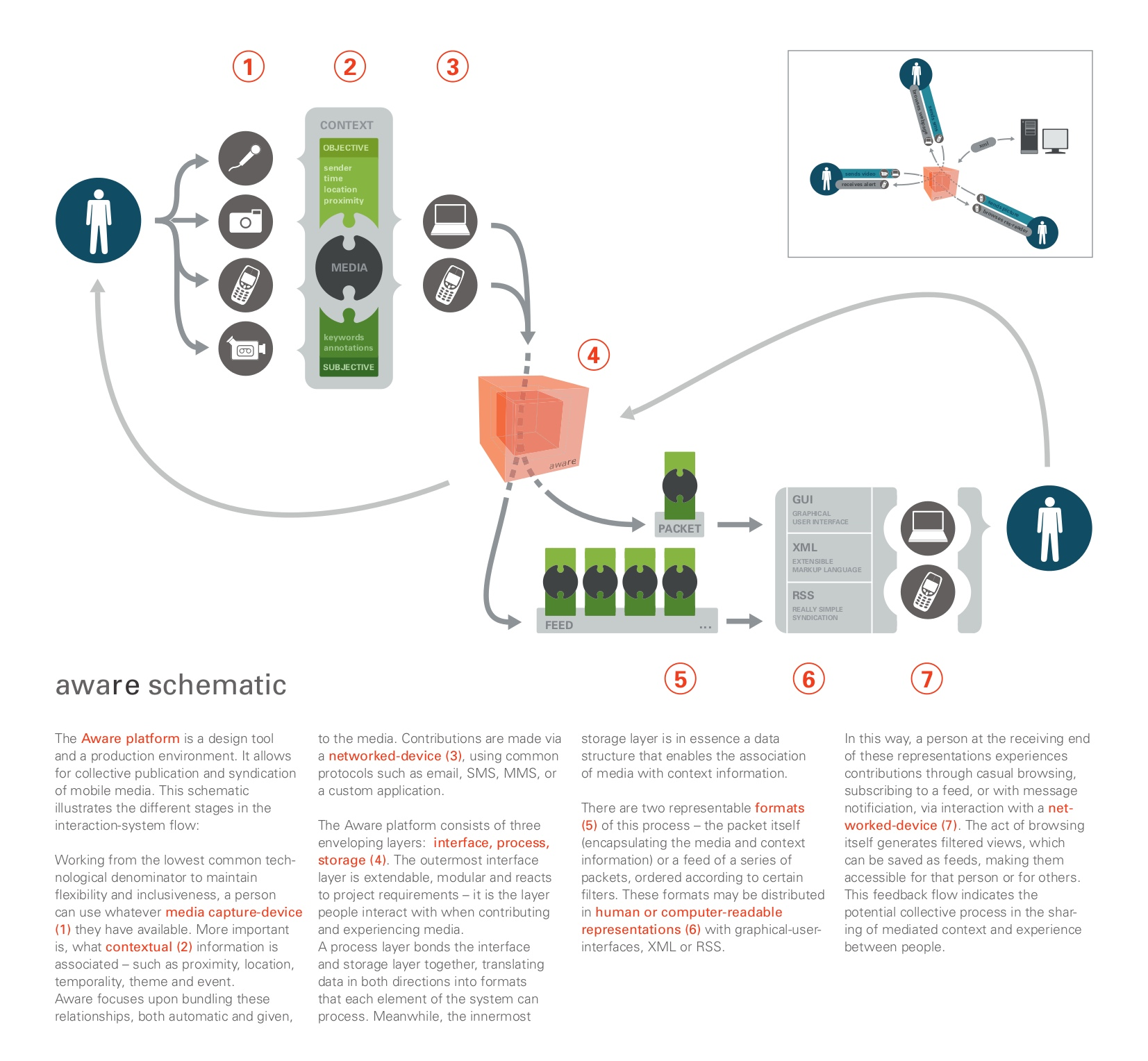 Figure 1. 'Aware' platform functionality schematic, August 2014, graphic design by Markus Ort, software engineering by John Evans and Aki-Ville Pöykiö.