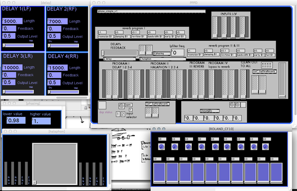 The use of dedicated hardware for each delay and filter necessitates a number of routing choices given the number of inputs and outputs and the processing power of the tools. The routing choices seem arbitrary when dealing with a computer-based version of the setup. It was, and still is, my opinion that these choices are not only an essential contributor to the sonic and structural identity of these pieces, but demand from the electronic performer decisions that lie between the technical and the artistic and, therefore, should be preserved when dealing with computer models.