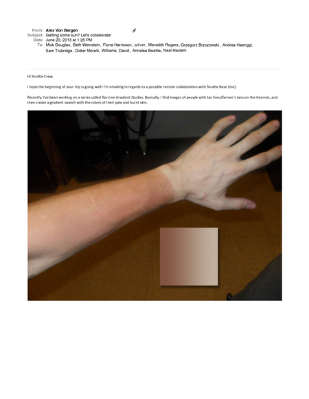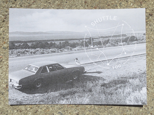 Shuttling what begins as a ruse, or perhaps a scripted McGuffin. Shuttling: a signifier and a collective undertaking without imperative, simply a vehicle for that yet to be determined, a promise of passage in a state of mobility and a gathering of energies.