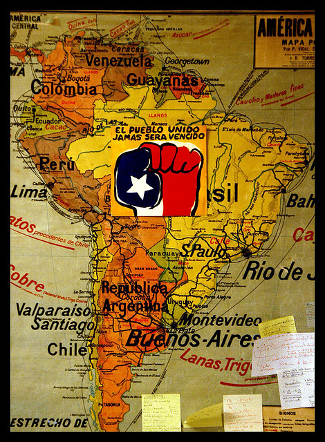 The lyrics of Quilapayun's song El Pueblo Unido (1973) - particularly the line "The people united, will never be defeated"- has come to signify a slogan for solidarity in Latin America and further afield.