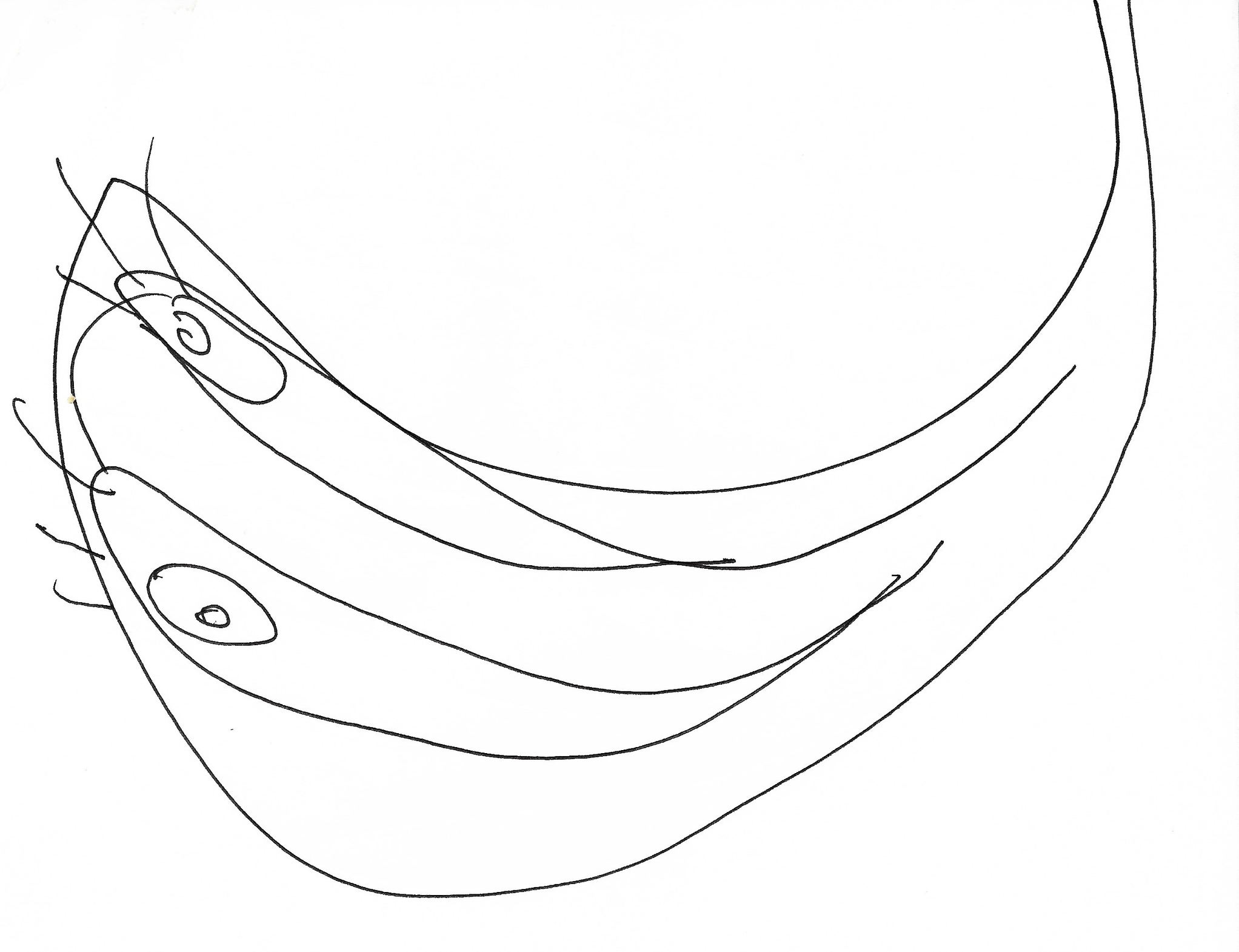 Here you are. Here...I am not so sure. I may be safe, but I am unsatisfied. The line has assembled itself into a body: mine, allegedly; semi-human, fringed, hunched and peering; mimicking the sensation of the elbows grasping frantically for one another as though flailing for lifebuoys. The figure is legless, and (for some reason) emerging, quasi-gaseous, quasi-liquid, somewhere between a chrysalis and a poured substance. The body finishes in a conical point.