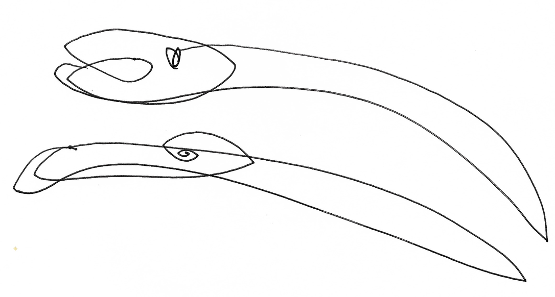 But it was a lifeline; a safety marker: my hook caught in a motif. It did not matter what I had grasped onto; all I knew was I had grasped for something; I was no longer in freefall. I latched; I applied force; my tendons contracted, and I drew with increased force. The hairline widened to a wire; darkened; grew thicker, stronger. It knitted about itself, back, forth, back, forth, expanding and contracting at the slightest flick of the wrist, flowing freely like the undulations of some great river. I caught the bug and it accelerated: voraciously, I drew body after body after body, sort-of-bodies, feminine-looking beings, ebbed and joined like linked newspaper cut-outs, an obsessive repetition; a compulsive return to something that fundamentally, I very much felt I knew; although how, I would struggle to articulate. A signifier with which I aligned myself.