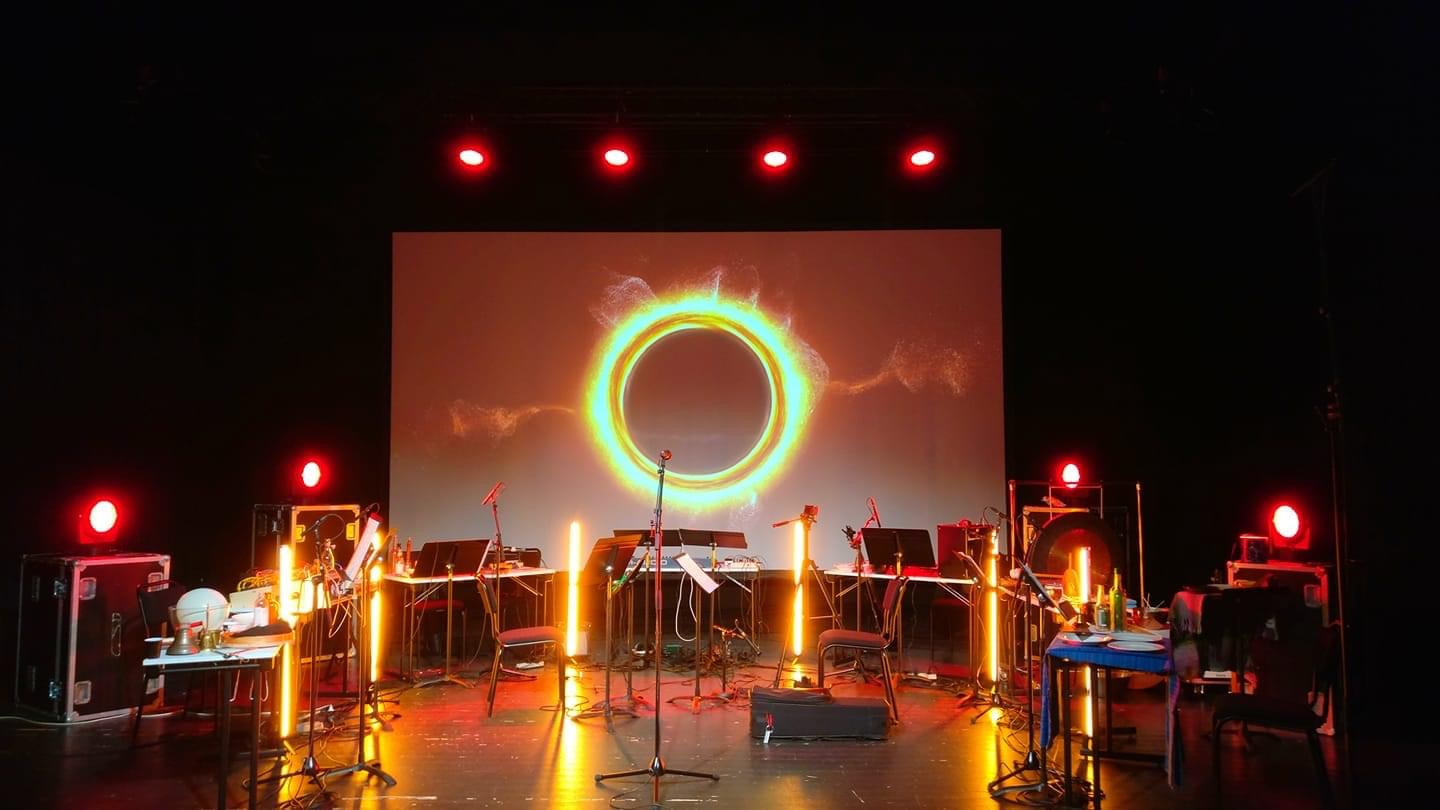 Stage design by Minna Brandt for the original performance of Towards the Event Horizon at Nymus Live 2021.