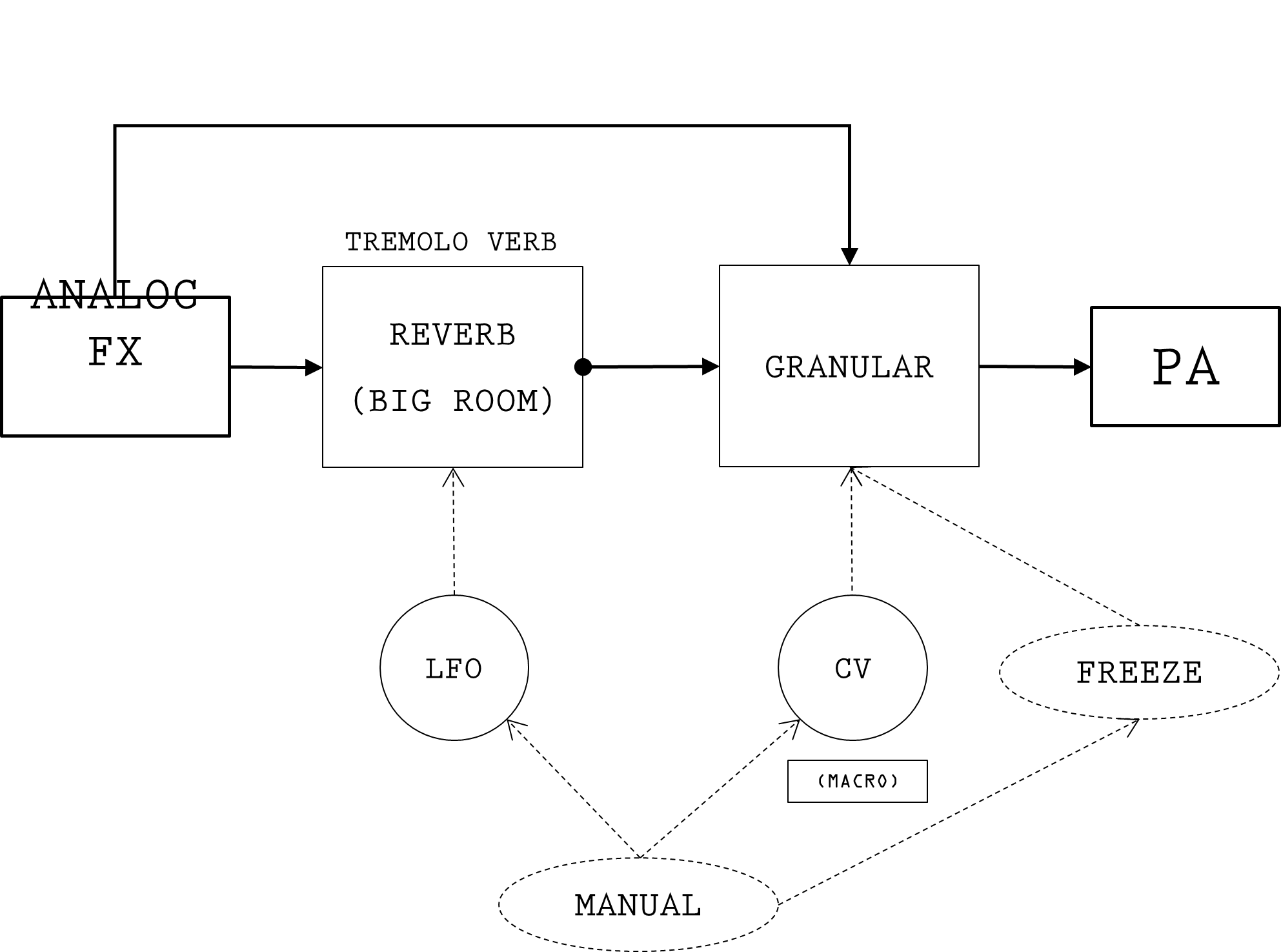 The electronic system is at the heart of the piece, shaping the resulting soundscape as a force of nature impossible to escape. Thus design and compositional process have been guided by the following concepts and titles: