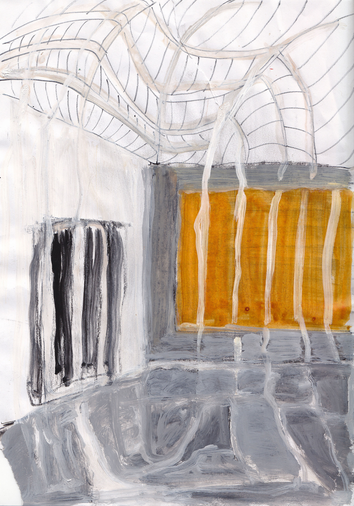 Design for a new house, scrapped 2002, reworked 2021 with bird observatories on mud landscape. Flipping the initial scaled sketches for the house, I selected the naturally lit staircase as the main sculptural and building element for bird observatories, spread on the mud landscape of a natural bird habitat. The sculptural structures are proposed to be installed on site following the parallactic model, which re-frames the site as the medium through the pieces.