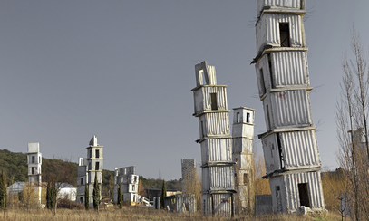 The original design for an artist's house without a given site was reworked by making the internal staircase the starting point for the design of steel sculptures serving as bird observatories.
