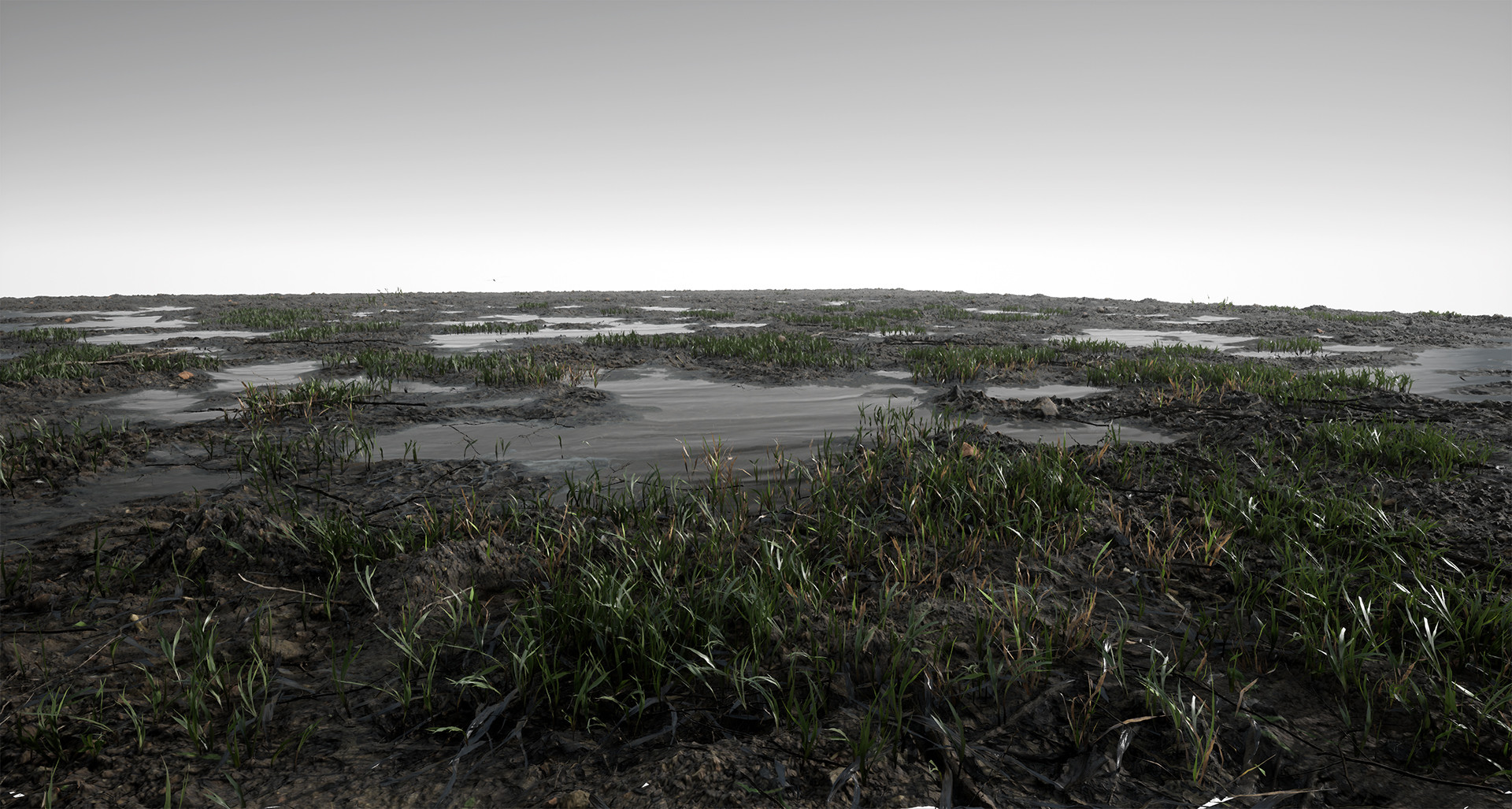 Unlike the architecture, the sculptural pieces do not follow a specific geometry: elevations do not match with the plans. The sculptures are conceived in terms of parallax and the principle of the spectator's view, while entering the observatories or walking around them. Sculpture will reframe the site as the medium for the works, according to changing weather conditions affecting the topology of a mud landscape.