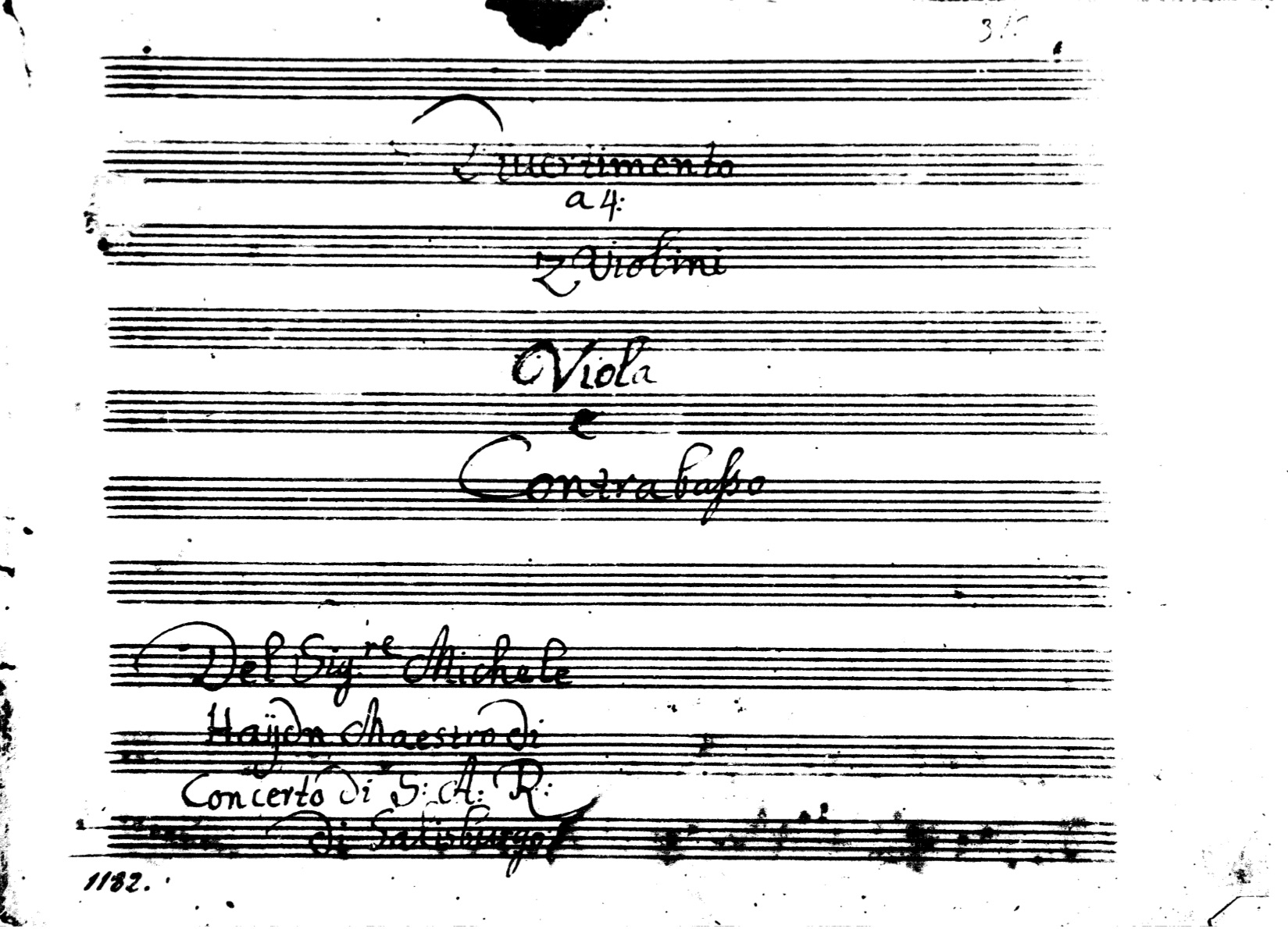 The Divertimento in B-flat for Violin, Viola, Oboe, Bassoon and Violone by, Michael Haydn appears to have been a very popular piece, as evidenced by the existence of several manuscript copies in various libraries such as Kremsmünster, Munich, Prague and Budapest. It is noteworthy that each of these copies has distinct variations in terms of title page and instrumentation, which further underlines the great popularity and use of the piece (Figure 51).