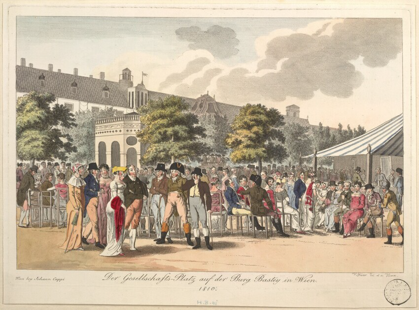 Fig. 25 Der Gesellschaftsplatz auf der Burgbastei in Wien, by Vincenz Raimund Grüner (1771 – 1832 https://sammlungenonline.albertina.at/?query=search=/record/objectnumbersearch=[DG2013/151]&showtype=record) (accessed October 15, 2022)