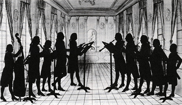 As entertainment music, the divertimento can be classified as a subcategory of serenade music. Serenades were known since the Renaissance as a lover’s song to his beloved, which was played under her window on a starry evening. In the 17th century the aristocracy and upper classes adapted the honorific function and the outdoor setting of the lovers song to celebrate special occasions such as name days, birthdays, weddings and promotions.8 Other occasions for outdoor music were “garden parties, street serenades, marches, field music, carnivals, circus, tower music, farewell music and other entertainments; those for indoor music were court dinners, assemblies, convocations, coronations and inauguration music, as well as music for cafes, and opera, ballet, and pantomime. Any special day such as these would present an occasion for indoor or outdoor music depending on the season.”9
