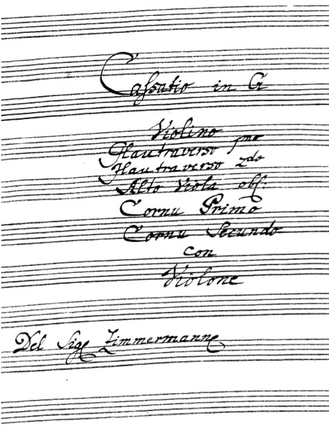 Figure 33 Title page and Menuet of Violone part from Zimmermann’s Casatio in G