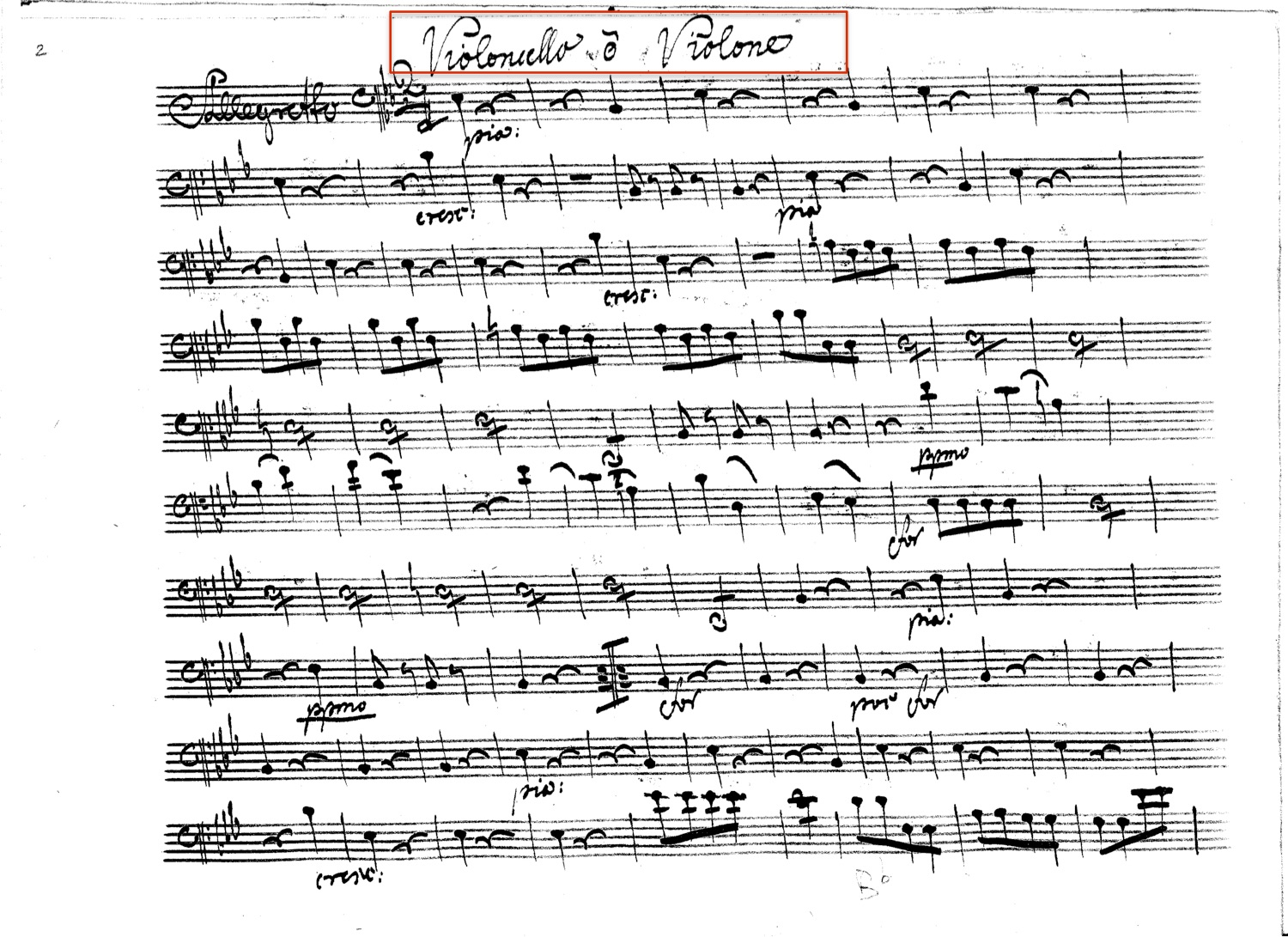 In a significant proportion of divertimento manuscripts, the term ‘basso’ is used to denote the bass line. However, the term ‘basso’ simply means ‘the bass line’ and does not indicate a specific instrument. During the 18th century in Austria, the double bass was referred to as violone or contrabasso. Thus, when these terms or other specific terms such as violoncello or fagotto (bassoon) are used in a manuscript, it becomes clear which instrument is supposed to play the bass line. Nevertheless, given that divertimentos were typically performed with one player per part, the use of the term ‘basso’ to designate the bass line poses a problem in determining the appropriate instrument to play the part.