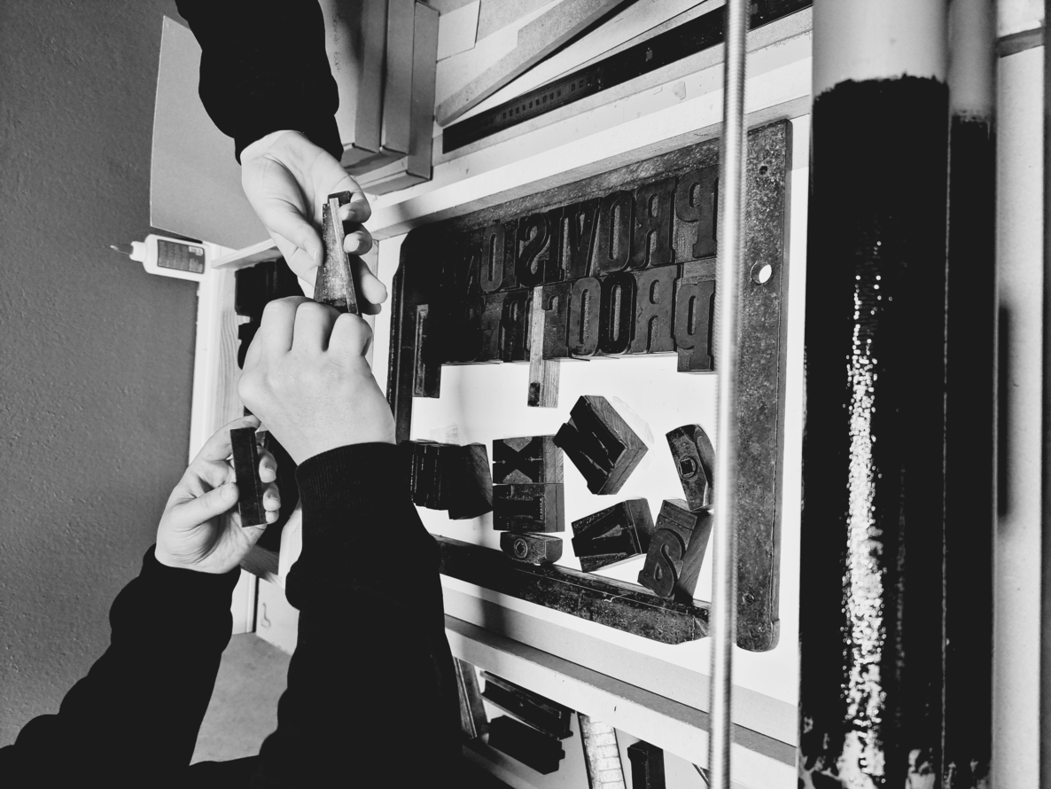 In addition, two Xcm wide parts of a PVC pipe with Xcm diameter, and other Xcm wide part of a Xcm diameter tube were used. The two tubes of the same diameter were used as ink rollers. The larger diameter tube was used to build the printing cylinder of the “provisional cylinder proof press”.