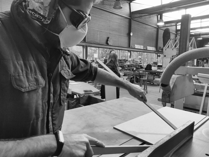 For phase 1, one MDF plate were used. They were pre-cut in the store in X parts. These were cut into X pieces to form the structure of the printing base, the gutters belonging to them and also the support for the cylinders. For that, It was necessary to use a table-top saw to cut the fine pieces for the rails. It is worth noting that this process can be accomplished with simpler and more affordable tools, aided by fablabs and even made from 3D printing.