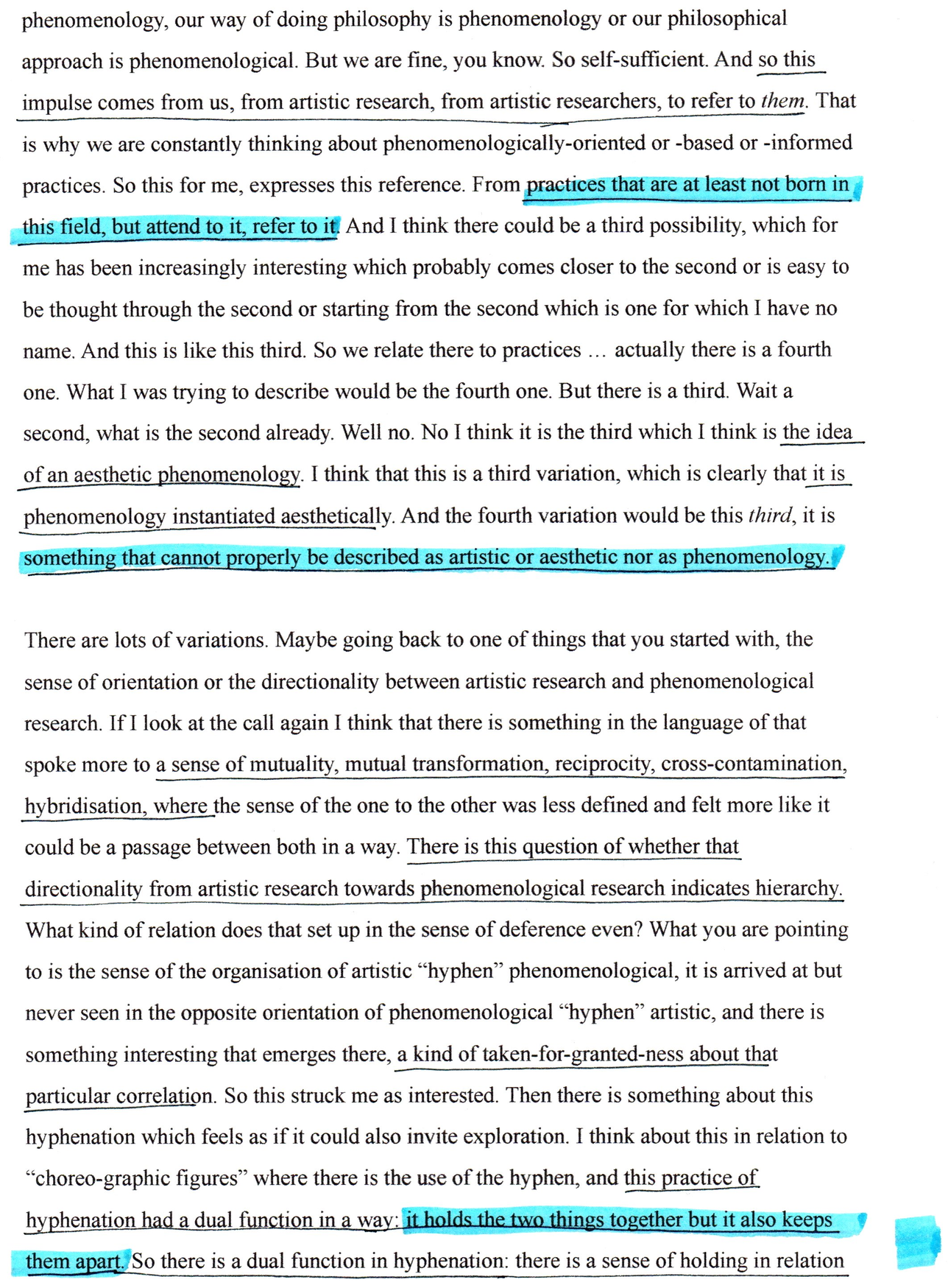This exposition forms part of the Editorial Introduction by Alex Arteaga and Emma Cocker published in the Special Issue 'Practices of Phenomenological and Artistic Research', (eds.) Alex Arteaga, Emma Cocker, Erika Goble, Juha Himanka, Phenomenology & Practice, [Vol. 17, No.1, 2022]. ISSN 1913-4711 See full issue here - https://journals.library.ualberta.ca/pandpr/index.php/pandpr/index