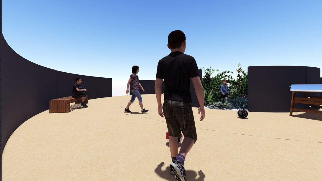 The "playground function box" is a quarter round shape so that it can be easily spliced into different combinations of shapes and adapt to most geographical conditions. The playground function box plane is made of environment-friendly new plastic material. This material is softer to the touch than other materials and provides safety for children on the playground.