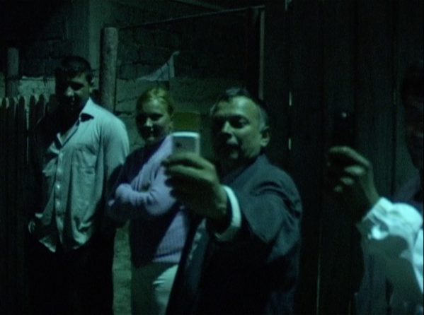 In these domestic situations, loudspeakers and the recording device are essentially used in the filmed situations to create and document an atmosphere of hugs, kisses, toasts, and all forms of shared affect within extended families. A saxophonist and renowned lăutar, Babo is both an “emotion maker” (Stoichiță 2008) and an expert in producing atmosphere. In these various situations, he uses his phone almost as a musical instrument or as a loudspeaker. Many of these situations are filmed in the domestic space, with background music emanating from the television or a small hi-fi system. Family members, and occasionally family friends such as godparents, are amused to see the children dancing in front of the speakers, the scenes being mostly filmed in the courtyard or in the house. It would be possible to say that in Dițești, listening to music played through loudspeakers in front of the camera sometimes “encourage[s] the family to display its familialism” (Aasman 1995: 108). However, when viewing the thirty or so videos recorded by Babo (only five of which are included in the short film above), one can see that the situations filmed are not limited to these family atmospheres. Two videos were recorded in contexts similar to the one presented in the first part of this article: Babo filming the interactions of close relatives dancing while lăutari play “live” in the background.