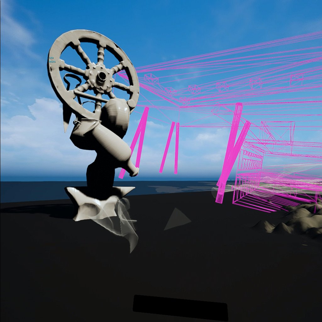 To create a VR world one needs an immersive headset. We are using the Oculus Quest 2. When we read this lyric essay in a few years time, this declaration will sound downright quaint. The Quest 2 has been the latest and greatest headset since 2020 but it is already being superseded by others with better screen resolution, faster refresh times, less weight, and higher comfort. You need a computer that has power. Headphones are optional but our composer thinks otherwise. You need a game engine. The two most powerful options are 'free' but not. As they say in the game industry there are 'in-app purchases'. They both have models for profit-sharing if you are making a commercial game. We used Unreal Engine 5.1 (UE). You also need to access other applications for 3D modeling, visual effects, sound production, video editing, and animation. We jumped around from Houdini to Rhino to Maya to Blender to Zbrush to Photoshop to Mudbox to Cinema4D to QGIS to SketchUp to AirLink to OculusLink to SteamVR. We were struck by the digital skills required to achieve, build or make even one tiny piece of our world and the constant need to use a specific piece of software.