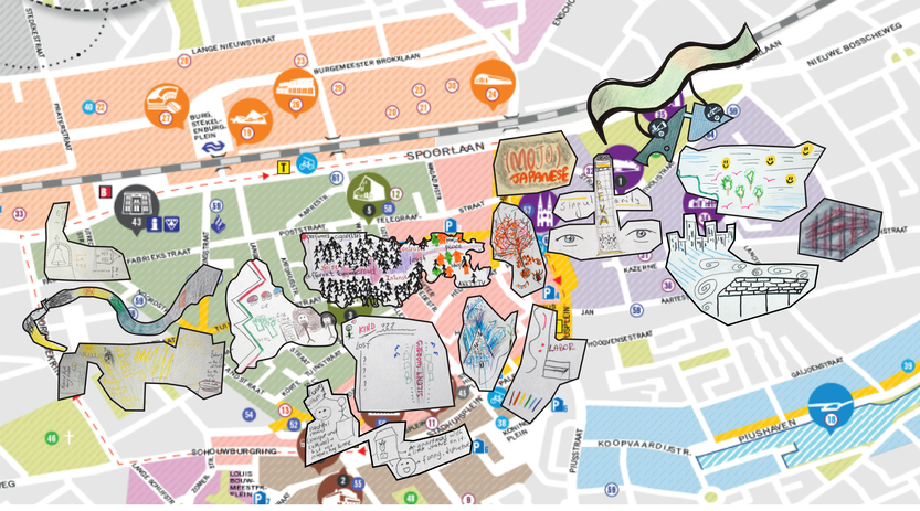 Each week, I organized walks with three participants in one of three designated areas of the TCC map: Dwaalgebied, Winkelgebied, and Veemarktkwartier. The walks are conducted individually. They follow the tasks provided to them during the experience, with each task having a set timeframe. They captured both the surplus and non-surplus aspects of the urban environment and engaged in conversations with citizens. After the walks, participants gather to reflect on their experiences by translating them into drawings. They then verbally share their drawings with the group.