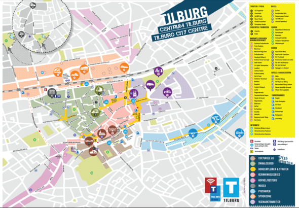 How can international students use the psychogeographic mapping practice of dérive to experience the aesthetic of Tilburg's urban environment within the city's cultural texture in the areas defined on Tilburg City Center Map?