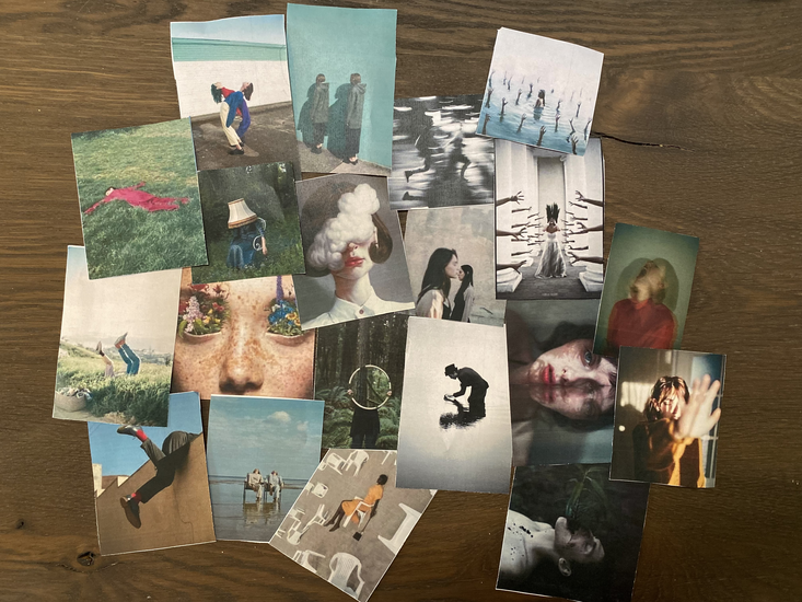 The collages are about; Seeing. Not seeing. Eyes covered. Chaos. Connection. Feeling. Distance. Together. Alone. Stuck. Free. It also fits with the following text I wrote about seeing: