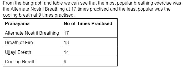 It should be noted that not every asana or pranayama exercise was practised by every participant and in some cases participants chose to stick with one exercise per category to practise for the full first week. Whilst this establishes a proficient grounding in the particular exercise, not every participant's yoga routine looked the same so this can contribute to varying results. However, the experience of practising yoga should be very personal as everyone's body and capabilities are different. Therefore, a singular routine for every participant would not encourage the participants to practise body awareness. By creating their own routine they are cultivating their autonomy over their bodies and thinking critically on what is best for them and their experience, rather than blindly follow someone else’s routine. However, it is relevant to consider that therapeutic methods will not always feel comfortable and may feel counter-intuitive. In that sense it is important to identify what feels uncomfortable because it is difficult, and what feels uncomfortable because it is potentially harmful