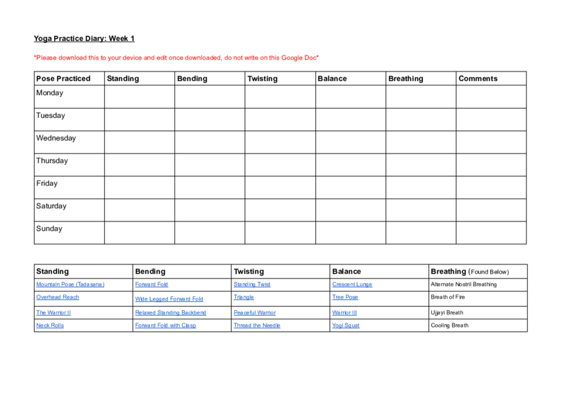 The last column of the practice diary left space for comments on how the yoga sequences have affected the participants throughout their week. Of the seven participants, six contributed to this section. The results include both positive and negative responses however the general reaction throughout the participants is that yoga assisted their practise rather than hindering it. With the recurrent benefits being general relaxation, relieved tension, increased breath control and heightened body awareness.