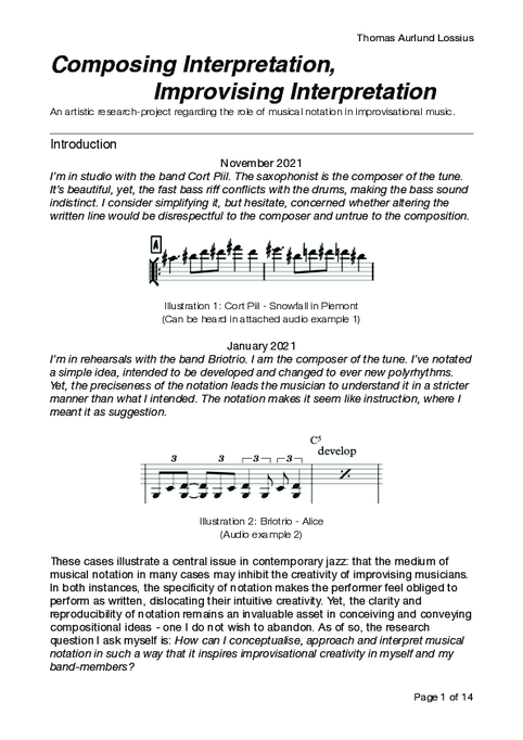 “How can the process of aurally transcribing compositions lead to reflections on interpretation for the performing composer, and how do jazz compositions afford the performer to co-create the artistic product through interpretation?”