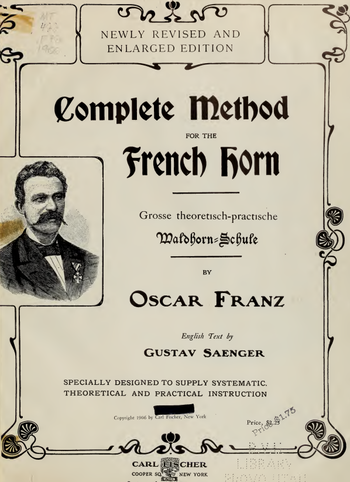 The person whom Richard Strauss dedicated his Nr.1 Horn Concerto in Eb-major op.11 was Oscar Franz (1843-1886), which proves that he was one of the most important and prominent persons in the history of the horn, though he is not the most well-known hornist today. He spent his active years in Dresden, where he played in the Dresden Staatskapelle and he taught at the Dresden Conservatory as well. The Grosse theoretisch-praktische Waldhorn-Schule is his major work which, similarly to Kling’s book, has two important chapters: The Stopped Horn and Transposition. The first one gives us the same advice that it is worth it to start with the natural horn and change to the valve horn just when we had got to know the true character and personality of the (natural) horn.