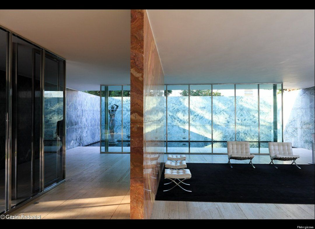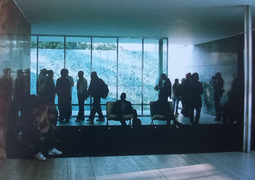 Designed diverting from the grid, Mies Van De Rohe’s Barcelona Pavilion, built and taken down between 1929 and 1930 to be rebuilt in 1983-86, contains a single sculpture of a female nude, separated from the viewer by a wall panel and a pool of water. The statue is a memorial for the only female amongst a group of students, who, during the Spanish civil war, were captured and tortured, resulting in the woman’s death. Although the sculpture is made in the Neo-classical tradition, the pavilion’s own diversion from classicism creates a semi-labyrinthine physical experience of the architectural space, which demands from the visitor to orient themselves among side the luxuriously cladded wall panels and the minimal furniture, in order to get a view of the female nude. Depicting a woman with her hands in the air, as if she is about to get shot, standing in the middle of a water pool, thus unreachable to the viewer, the statue earns the status of the sacred, although it bears no religious, or even remotely Romantic, connotations.