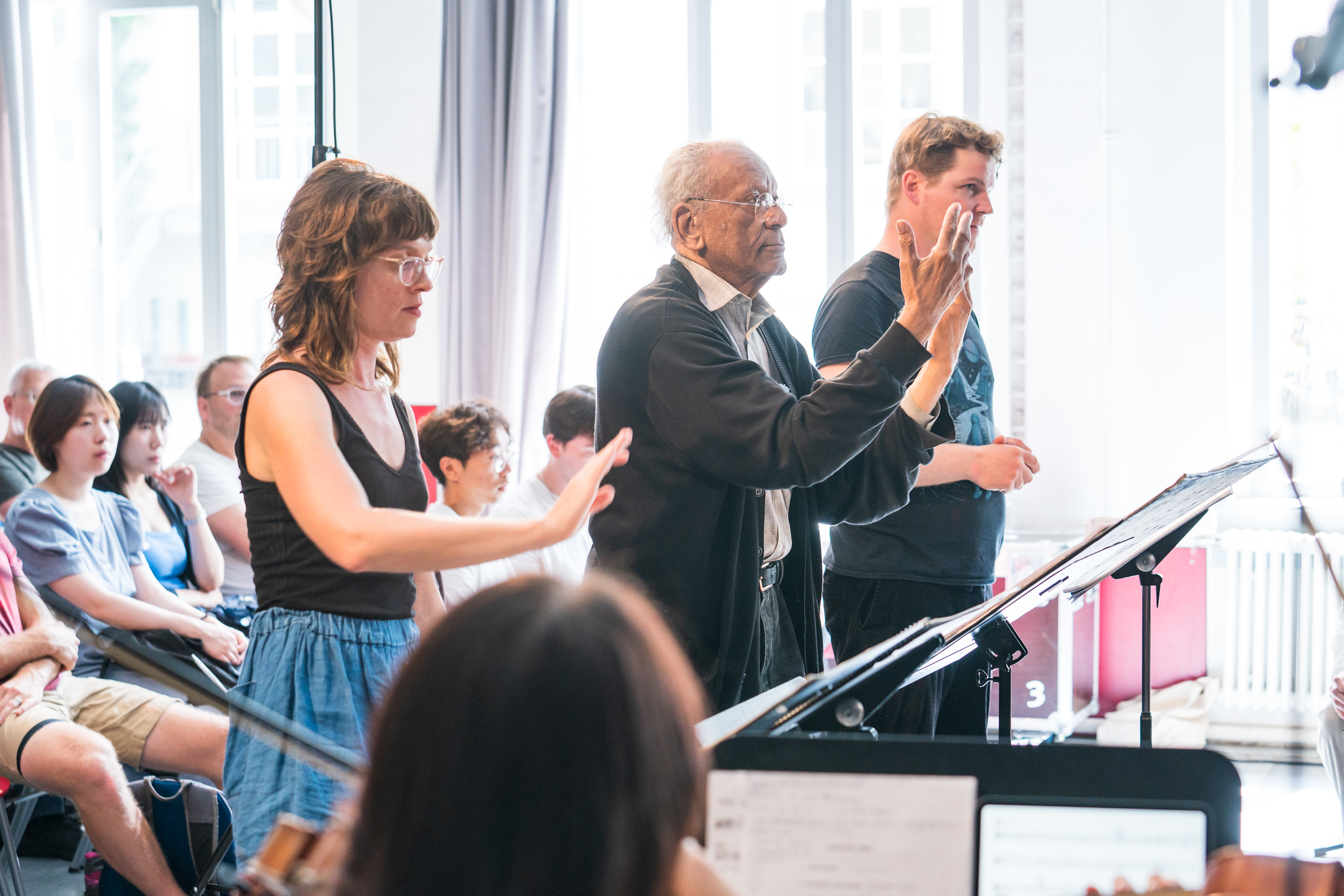 The preparation for this performance was again very different from the previous ones. For the performance with students in Antwerp, I had a lot of rehearsal time, and I kept the repertoire relatively simple so we could really dig in and explore the material in a fairly straightforward way. In Darmstadt, the participants of the summer course came from different corners of the world specifically to learn New Music, new scores, and to experiment. They were very eager to absorb Braxton's experimental approach to orchestral performance practice, and having his presence there obviously also created a special kind of energy around his work. With the Brussels Philharmonic, I entered the institutional world of the classical orchestra, which created its own set of challenges.