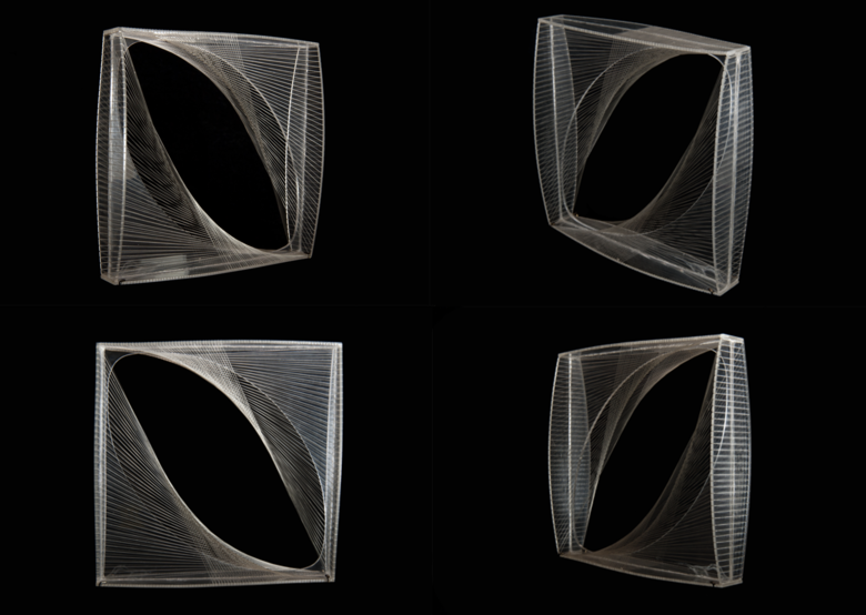 Process-based musical representation is also used in the composition of the music-theatre piece In response to Naum Gabo: Linear Construction in Space No. 1. In this case, to engage with the particularities of Naum Gabo’s eponymous sculpture. This sculpture is the result of the process of looping a nylon thread in a Perspex[68] structural frame, creating “an illusion of a continuous parabolic form”[69].