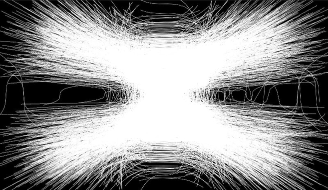 It followed a phase, where I was looking at the CERN particle trajectory data David had given me from the Transpositions project, perhaps creating strange interpretations of these trajectories. In the end it was David who used this kind of data for his video works. I came to a point where I lost the understanding why I was juggling with these files, I simply couldn't find an entry point that caused an intrinsic connection, that directly resonated with me.