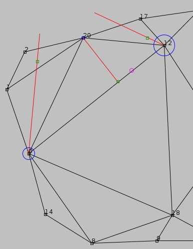 Negatum consists of two basic cyclic algorithms that run in parallel. The first produces the corpus of sounds, the second one projects the sounds into space. The first one maintains the current population of the GP; if it becomes "too old" (too many sounds have been selected from it, too many iterations have run), a new sound recording is obtained from the microphones, and the GP is restarted. After a number of iterations in the GP, the SVM marks interested and uninteresting sounds, then adds the interesting sounds to the SOM, organising them in a two-dimensional space. If the SOM becomes too large, a new empty SOM is created, so over time, a number of different sound spaces is built up. The projecting algorithm chooses from the SOM instances and traverses them in a diagonal movement (from one of the four sides to another of the four sides), picking up the sounds. The sounds thus obtained are placed on a timeline, forming a sequence of sometimes overlapping and sometimes spaced apart sounds. This sequence is then projected into the space, using again a diagonal movement across the grid of 24 channels in the gallery (each of the two systems had been assigned half of the 48 channels). A variant of vector-based amplitude panning is applied, using a Delaunay triangulation of the speaker positions, a reference to the physical triangle structure of the visual projection mesh installed in the space.